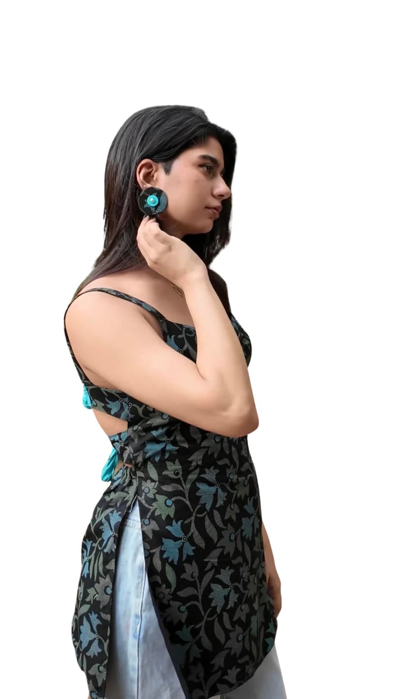 Step into the spotlight with LAVAANYA our Stylish & Double Bow Back Kurti, a chic and playful addition to your wardrobe. Crafted from breathable fabric, this kurti features a flattering silhouette that pairs effortlessly with pants, jeans or shorts. Slip on our handmade matching Fabric earrings and it's perfect for the trendsetter Girl. Product Highlights: ✔ Double bow back kurti with a chic, playful design ✔ Crafted from breathable fabric for all-day comfort ✔ Flattering silhouette that pairs effortlessly with pants, jeans, or shorts ✔ Comes with handmade matching fabric earrings ✔ Perfect for the trendsetter looking to make a statement ✔ Designed for style, ease, and versatile everyday wear