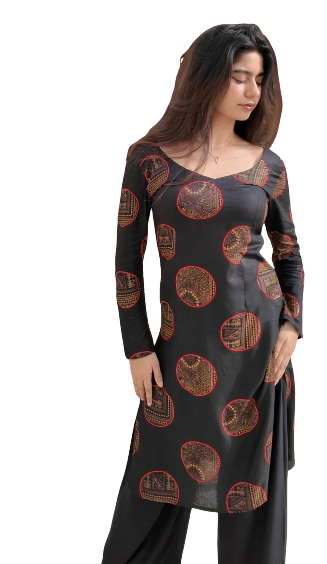 Elevate Your Everyday with MOHINI our long kurti—a perfect blend of timeless style and supreme comfort. Whether you pair it with jeans, leggings, or tailored pants, MOHINI transforms your look into something stylish yet relaxed. Its versatile silhouette adapts seamlessly to casual outings or relaxed get-togethers. A broad neckline and a discreet rear zipper deliver a flattering, tailored fit—easy to slip into yet polished in form. Paired with our complimentary fabric earrings uniquely made to complete your look. Product Highlights: ✔ Long kurti with a versatile silhouette for effortless style ✔ Broad neckline and discreet rear zipper for a flattering, tailored fit ✔ Can be paired with jeans, leggings, or tailored pants ✔ Perfect for casual outings or relaxed get-togethers ✔ Comes with complimentary fabric earrings ✔ Designed for timeless style and supreme comfort